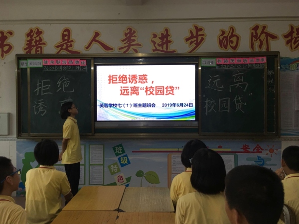——芙蓉學(xué)校初中部組織開展“遠離校園貸”教育主題班會活動 發(fā)布時間:2019-06-25 17:47 信息來源:本網(wǎng)站 瀏覽次數(shù):24
