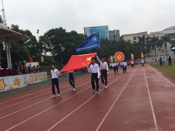 入場(chǎng)儀式正式開始,國(guó)旗護(hù)衛(wèi)隊(duì)、校旗護(hù)衛(wèi)隊(duì)、?;兆o(hù)衛(wèi)隊(duì)分別護(hù)衛(wèi)著國(guó)旗、校旗、?;章氏热雸?chǎng)。他們踏著鏗鏘的步伐,威武雄壯地通過主席臺(tái)。接著,彩旗隊(duì)、裁判方隊(duì)以及各個(gè)年級(jí)的班級(jí)方隊(duì)踏著輕盈的步伐陸續(xù)通過。師生們步伐整齊,精神抖擻,口號(hào)鏗鏘有力,充分展現(xiàn)團(tuán)結(jié)奮進(jìn)、昂揚(yáng)向上的師生風(fēng)貌。