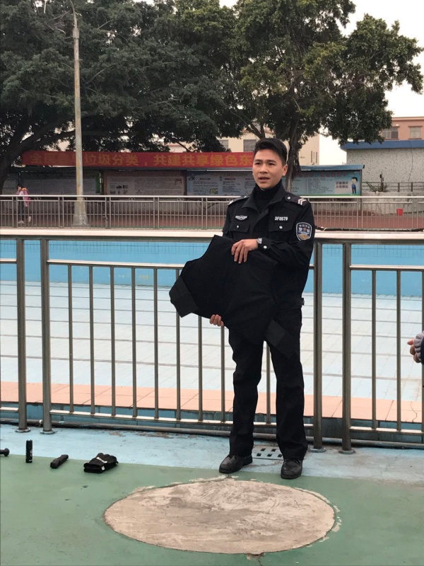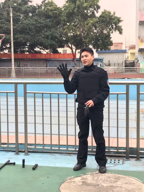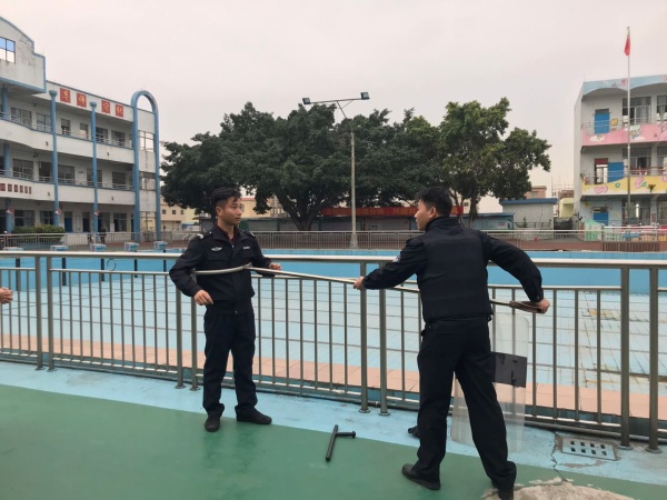 下午放學(xué)后,東罟小學(xué)全校教師集中在學(xué)校保安室門口,演練開始前首先由東罟村協(xié)警對全校老師進行了反恐防爆知識講述,他先介紹了防爆衣及防割手套的正確穿著方法,接著介紹了反恐鋼棍、鋼叉及防爆盾的正確使用方法、安全注意事項及攻防技能,并且進行了直觀的演示,以保證演練的安全進行。接著演練開始,一名歹徒趁學(xué)校放學(xué)之際校門開放時偷偷溜進校園里。學(xué)校安保人員立即向?qū)W校匯報,并啟動應(yīng)急預(yù)案,全校教師快速響應(yīng),嚴(yán)格按照突發(fā)事件應(yīng)急預(yù)案要求,迅速到崗。學(xué)校應(yīng)急隊員的老師立即拿起鋼叉、盾牌等裝備上前阻截暴徒,成為保護學(xué)生的第一道防線。很快,保安、學(xué)校應(yīng)急隊員聯(lián)手制服了這名入侵校園的歹徒。在全校老師的認(rèn)真配合下,東罟小學(xué)的防暴演練取得了非常好的效果,這與東罟小學(xué)對安全工作的重視和對防暴工作的細致安排是分不開的。