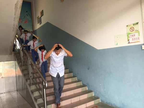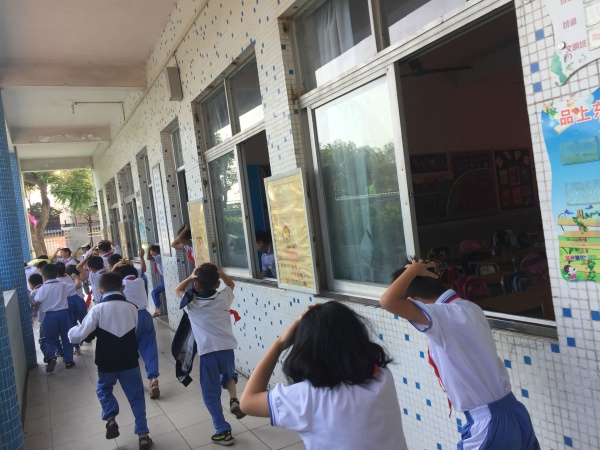 演練前東罟小學的行政領(lǐng)導(dǎo)和全體教師,結(jié)合實際情況,認真細致地制定了防震演練活動方案。活動開始前,各崗位教師各就各位,上午9時10分,隨著一陣急促的警報聲,全校學生在老師的組織下迅速用課本、書包、桌子等遮擋物擋頭躲避;貓著腰身,以確保自我人身安全,有序地撤出教室跑向避險安全區(qū)。