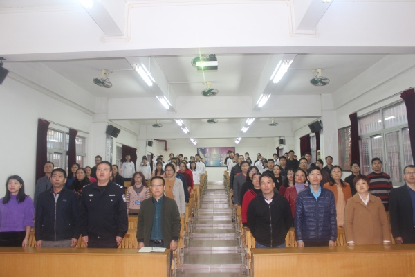 因天氣原因,開學(xué)典禮轉(zhuǎn)移到階梯室召開。本次開學(xué)典禮共有六項(xiàng)議程。