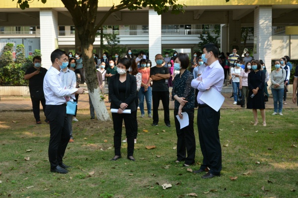 為做好2020年春季學(xué)期學(xué)生返校安排,確保師生的生命安全和身心健康,2020年4月20日上午,東鳳鎮(zhèn)黨委書(shū)記羅綺冬、黨委副書(shū)記李有林、黨委委員劉燕文帶領(lǐng)鎮(zhèn)文體教育局(教指中心)、市場(chǎng)監(jiān)督管理分局和衛(wèi)計(jì)局等相關(guān)單位部門(mén)負(fù)責(zé)人,對(duì)東鳳中學(xué)初三復(fù)學(xué)籌備工作進(jìn)行督導(dǎo)驗(yàn)收。東鳳中學(xué)校長(zhǎng)劉喜全攜全體行政接受驗(yàn)收。