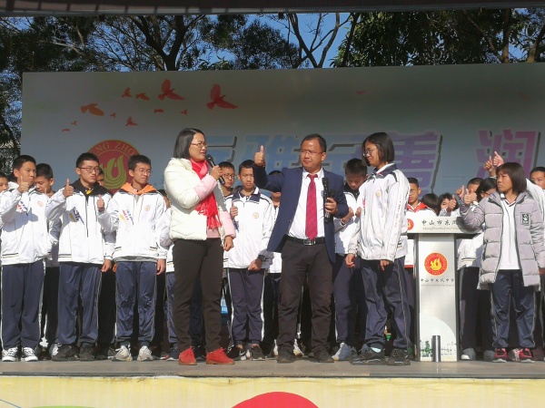 在中山市紀念中學體育館,參與活動的全體同學以青春的名義鄭重宣誓:拼洪荒之力,圓青春夢想;破長風萬浪,贏無悔人生!初中不留遺憾!人生更加完美!