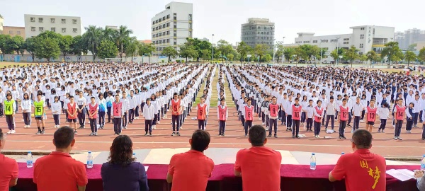 隨著莊嚴(yán)的國(guó)歌想起,全校師生舉行了運(yùn)動(dòng)會(huì)前的升旗儀式。