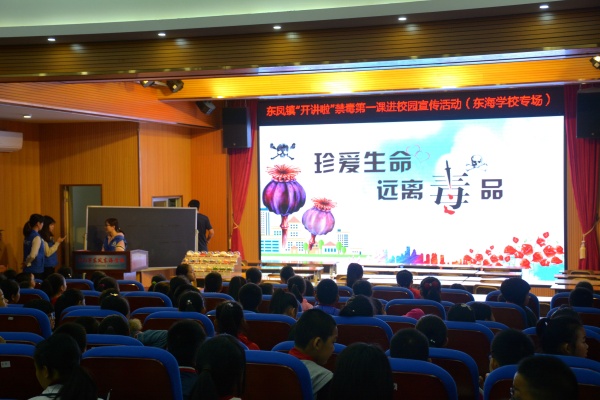 毒品不僅對身心的傷害很大,對社會的危害更大,嚴重影響人的身心健康。毒品一日不絕,禁毒一日不止。為貫徹落實校園毒品預防教育工作,進一步提高青少年識毒、拒毒、防毒意識,12月19日上午,東鳳鎮(zhèn)禁毒辦來到東海學校,開展“東鳳鎮(zhèn)‘開講啦’禁毒第一課進校園宣傳活動”。