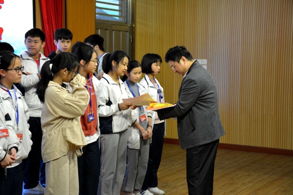 觀看完畢后,教務(wù)處呂萬春副主任宣讀上學(xué)期期末考試總分前50名的獲獎(jiǎng)學(xué)生名單,學(xué)校行政及初三任課教師為獲獎(jiǎng)學(xué)生頒獎(jiǎng)。