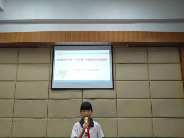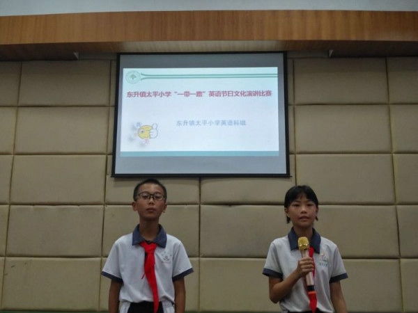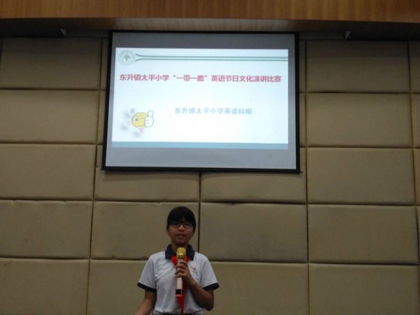 為豐富校園文化生活,激發(fā)學(xué)生學(xué)習(xí)英語(yǔ)的興趣,提高英語(yǔ)口語(yǔ)水平,給學(xué)生提供一個(gè)鍛煉自我、展示自我的舞臺(tái),結(jié)合東升鎮(zhèn)“一帶一路”國(guó)家文化課題研發(fā)活動(dòng),太平小學(xué)于5月22日下午舉行了五、六年級(jí)學(xué)生英語(yǔ)演講比賽。