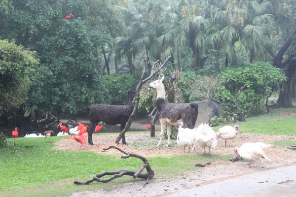 孩子們興奮地坐上小火車,一路穿過“澳洲森林”、“美洲叢林”、“西亞荒漠”、“南亞雨林”、“歐洲山地”、“東非草原”......。綿綿細(xì)雨卻阻隔不了同學(xué)們就被道路兩旁的各種珍禽異獸所吸引。他們熱情地與白虎、亞洲象、火烈鳥、鴕鳥、袋鼠、河馬、長(zhǎng)頸鹿、劍羚等諸多動(dòng)物們打招呼。