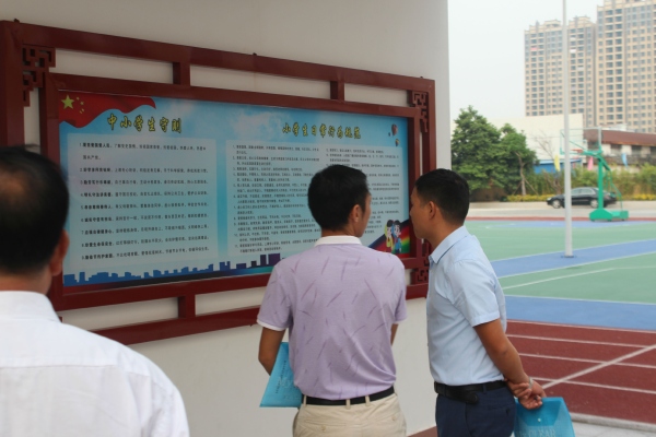 督導(dǎo)組和鎮(zhèn)文體教育局領(lǐng)導(dǎo)來到學(xué)校后,在華盛學(xué)校校長王英普、主管德育的副校長李安科的帶領(lǐng)下,首先從校容校貌和校園文化建設(shè)方面,分別巡視了校園文化墻,學(xué)校食堂以及《社會主義核心價值觀》、《中小學(xué)生守則》、《小學(xué)生日常行為規(guī)范》、《辦學(xué)思想》、《辦學(xué)目標(biāo)》和《校風(fēng)、教風(fēng)、學(xué)風(fēng)》的展示櫥窗,再到教室文化布置和環(huán)境氛圍等。均給督導(dǎo)組留下了深刻的印象。接著,督導(dǎo)組領(lǐng)導(dǎo)查看了學(xué)校的黨員活動室、少先隊活動室、班主任工作室、心理輔導(dǎo)室、廣播室和監(jiān)控室等硬件建設(shè)方面,督導(dǎo)組對華盛學(xué)校在德育的環(huán)境和經(jīng)費保障方面給予了充分肯定。