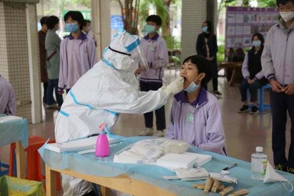 筆者觀察到,在24日上午10:30左右,負責采樣的醫(yī)療檢測公司就已經完成了該校497名初三學生的核酸檢測采樣。另外,在東升中學采樣點進行采樣檢測的,除了東升中學初三的學生之外,還有在東升鎮(zhèn)生活的現在在讀的各校高三學生850多人。之所以采用這樣“就近原則”,是為了減少不必要的人員遠程流動,確保學生健康安全。據悉,樣品將被送到廣州檢測,兩天之內將全部公布檢測結果。