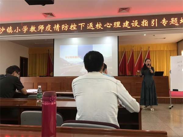 為了有效地幫助老師消除疫情下返校所致的恐慌、焦慮心理,預(yù)防、減緩和控制返校后新模式適應(yīng)不良所導(dǎo)致的心理影響,有效維護(hù)教師心理健康,2020年5月10日下午,阜沙鎮(zhèn)教指中心邀請(qǐng)中山市心理衛(wèi)生協(xié)會(huì)理事、心理服務(wù)協(xié)會(huì)副會(huì)長(zhǎng)、專業(yè)敘事治療師虹廷老師給全鎮(zhèn)小學(xué)教師做疫情防控下返校心里建設(shè)指引專題培訓(xùn)。阜沙鎮(zhèn)羅松小學(xué)全體教師參加了本次培訓(xùn)。