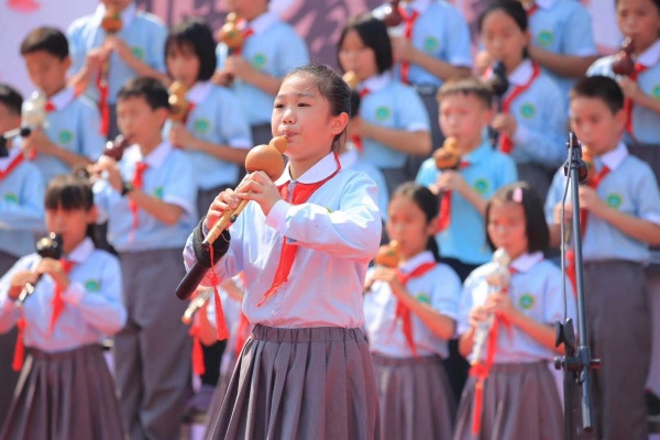 學校的黃鳳英校長宣布比賽開始,輕柔婉轉,圓潤質樸,極富表現(xiàn)力的音律從牛角小學飄出,展示著音樂器樂教學成果。