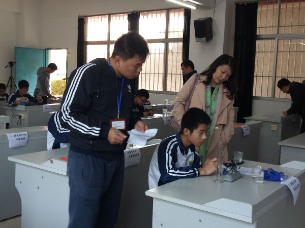 考試過程中,首先是學(xué)生自己抽簽抽取考試的題目,由教指中心領(lǐng)導(dǎo)的評(píng)委小組進(jìn)行監(jiān)考。學(xué)生們有條不紊的抽簽,并且熟練而規(guī)范的進(jìn)行考試。期間,中山市巡考組的領(lǐng)導(dǎo)陳源斌,邱慎明,鄧明潔對(duì)牛角初級(jí)中學(xué)的實(shí)驗(yàn)考核進(jìn)行了巡視。并且肯定了實(shí)驗(yàn)考核工作到位,有序,還交流了對(duì)初中物理實(shí)驗(yàn)考核的一些意見。