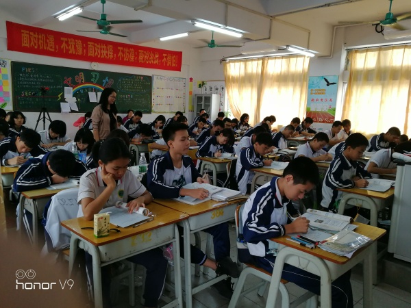 首先盧桂娟教師的精彩課堂吸引了大家。她由本單元的重要語法:定語從句入手。她通過讓學生自由發(fā)揮用定語從句造句來檢查學生對上節(jié)課內(nèi)容的掌握情況。學生們積極參與課堂,生成很多精彩的英語句子。然后她曬出一張英文電影票,讓學生根據(jù)圖片回答問題。以此提醒學生平常多注意隱性閱讀。之后,通過頭腦風暴的形式展示各種電影類型。進而自然過渡到有關(guān)各類電影的閱讀情境中。在閱讀的教學中,盧老師由總分總的閱讀方式引領(lǐng)學生閱讀。閱讀過程中她設(shè)計了各種各樣的閱讀活動,有找定語從句、回答問題、重難點短語和句子的講解、運用思維導圖復述課文等。學生動靜結(jié)合地參與到課堂教學中,課堂教學氣氛濃厚,教學效果好。