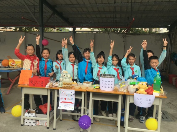 此次愛心義賣中,有的班級老師讓同學們分工合作,小收銀員、小服務員,忙得不亦樂乎,還有的同學為籌集更多的善款,帶上物品到處找尋購買者,他們的甜言蜜語和自賣自夸讓人難以招架。