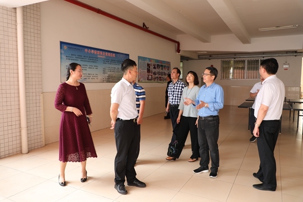 5月13日上午,港口鎮(zhèn)教育事務指導中心2018年度民辦學校年檢工作組成員劉憲軍、蘇少偉、吳昌育、廖志堅、李西群、蘇彩南一行蒞臨中山華附,對中山華附一年來的辦學情況進行了檢查。學??傂8毙iL、小學校長梁婉儀,總校副校長陳達生,總校校長助理、中學常務副校長宋秀國,總校校長助理、中學副校長馬新軍,工會主席、中學副校長葉倩萍,小學常務副校長唐梅等校領導陪同。