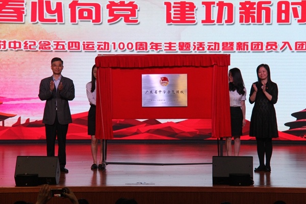 2017年初,中山華附團(tuán)委被確定為廣東省首批中學(xué)示范團(tuán)校創(chuàng)建單位,在創(chuàng)建過程中,中山華附團(tuán)校不斷加強(qiáng)陣地建設(shè)、師資建設(shè)、課程建設(shè)、品牌建設(shè),在入團(tuán)積極分子培養(yǎng)、團(tuán)員教育、團(tuán)學(xué)干部培養(yǎng)等方面,形成了自己的特色,取得了良好的成效,今年4月份,正式被團(tuán)廣東省委、廣東省教育廳評為“廣東省首批中學(xué)示范團(tuán)?!薄T趯W(xué)校紀(jì)念五四運(yùn)動100周年的這個特殊日子里,團(tuán)中山市委李曉鳴副書記和劉詩雄校長共同為廣東省中學(xué)示范團(tuán)校揭牌。