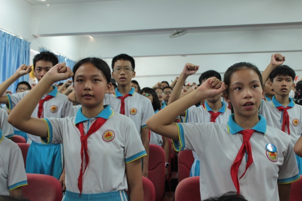 接著進(jìn)行的是第三個(gè)環(huán)節(jié)“宣誓”,為了致敬抗疫一線的英雄們,胡嬋媛老師帶領(lǐng)全體學(xué)生進(jìn)行宣誓,學(xué)生昂首挺胸,宣誓著對(duì)學(xué)校父母以及老師的感恩,對(duì)母校的自豪,對(duì)自身未來(lái)的展望。同學(xué)們一定能在未來(lái)的日子全面發(fā)展,以優(yōu)異的成績(jī)走向更美好的明天。