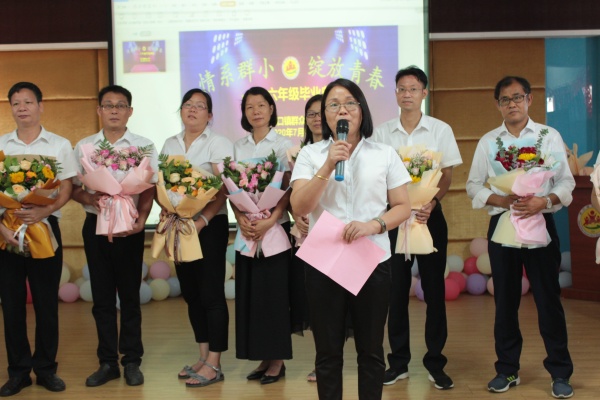 到了典禮的第二個(gè)環(huán)節(jié)“展未來(lái),恩師難忘”。為了表達(dá)對(duì)老師的恩情,畢業(yè)生代表上臺(tái)給全體行政、六年級(jí)老師獻(xiàn)花、行鞠躬禮。教師代表鐘尾芳老師向畢業(yè)生們臨別贈(zèng)言,一個(gè)個(gè)師生深情的擁抱,一句句溫暖的寄語(yǔ)表達(dá)了老師們對(duì)畢業(yè)學(xué)子的依依不舍和美好祝愿?,F(xiàn)場(chǎng)的老師被同學(xué)們的這份深情所感動(dòng),眼眶中醞釀已久的淚水滑落臉頰。