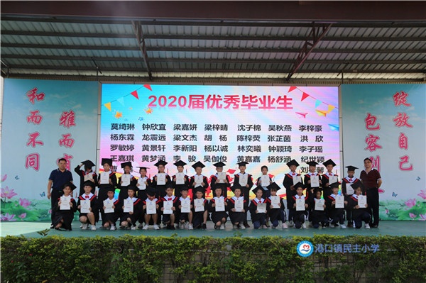 又是一年畢業(yè)季,又是一年豐收時(shí)。小學(xué)六年轉(zhuǎn)瞬即逝,為給孩子們留下一個(gè)難忘而有意義的記憶,2020年7月17日上午,港口鎮(zhèn)民主小學(xué)在學(xué)校操場(chǎng)舉行以“小荷綻放 夢(mèng)想起航”為主題的六年級(jí)畢業(yè)典禮。本次活動(dòng)內(nèi)容豐富,精彩紛呈由難忘母校,難忘恩師,夢(mèng)想起航三部分組成。全體師生及家長(zhǎng)代表參加了本次活動(dòng)。
