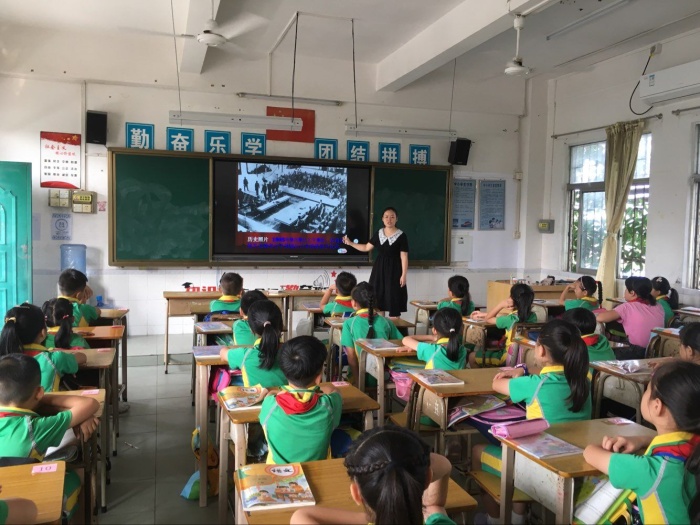各年級(jí)各班根據(jù)學(xué)生年齡特點(diǎn),精心選擇合適的活動(dòng)內(nèi)容,采用學(xué)生易于接受的活動(dòng)形式,組織開展活動(dòng)。老師們向?qū)W生簡(jiǎn)單的介紹了發(fā)生在70多年前那場(chǎng)戰(zhàn)爭(zhēng)的相關(guān)史實(shí),有的班級(jí)給孩子們講述了抗日小故事,有的班級(jí)組織觀看抗日題材電影;有的班級(jí)組織觀看抗日史料圖片展。王二小、小英雄雨來(lái)、狼牙山五壯士……一個(gè)個(gè)抗戰(zhàn)英雄的故事;《地道戰(zhàn)》《南京大屠殺》《平原游擊隊(duì)》……一部部抗戰(zhàn)主題的影片;一張張日本侵略者血腥屠殺中國(guó)百姓的照片;一段中華民族深受蹂躪的屈辱歷史的回顧。