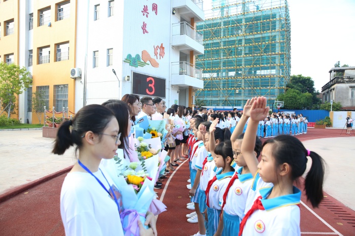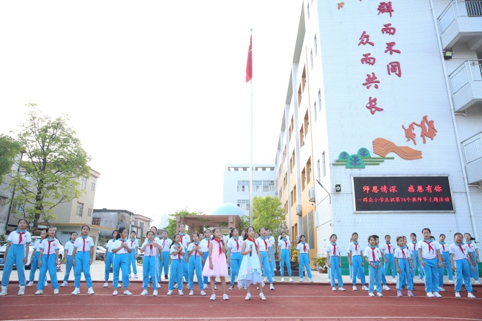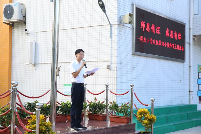 莊嚴(yán)的升旗儀式后,少先隊(duì)代表為老師們獻(xiàn)上了誠摯的祝福,發(fā)自肺腑的話語表達(dá)了對教師深深的敬意與感恩。接著,榮獲2020“中山市優(yōu)秀教師”稱號的教師代表關(guān)家聲老師上臺發(fā)言,他道出了廣大教師的心聲——為了學(xué)生的健康成長,為了黨的教育事業(yè),我們愿意默默奉獻(xiàn)、無怨無悔!