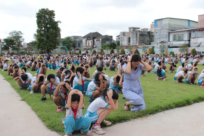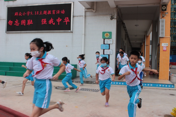 “嗚——嗚——”隨著防空警報(bào)響起,全體學(xué)生在老師的指揮下,迅速進(jìn)入應(yīng)急狀態(tài),有序緊急疏散學(xué)生。所有學(xué)生按照防火逃生演練路線,迅速而有序地通過(guò)各樓層疏散撤離到學(xué)校操場(chǎng)上。