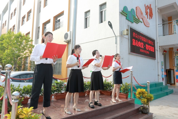 最后,在鮮紅的國旗下,全體師生向偉大的祖國鄭重呼號(hào):“祖國萬歲!祖國萬歲!”群眾小學(xué)全體師生為祖國送上最美好的祝福,共同祝愿祖國更加繁榮昌盛!