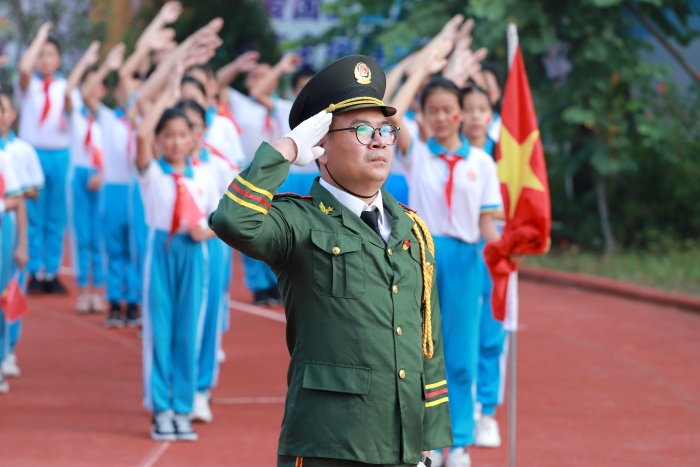 隨后,梁銓華校長進(jìn)行了慷慨激昂的講話,他高贊了祖國飛速發(fā)展的現(xiàn)代化進(jìn)程,并號(hào)召全體師生要熱愛中國共產(chǎn)黨、熱愛祖國,熱愛人民,積極進(jìn)取,希望同學(xué)們樹立遠(yuǎn)大志向,努力學(xué)習(xí),以優(yōu)異成績感恩黨、感恩祖國,成長為祖國的棟梁之才。