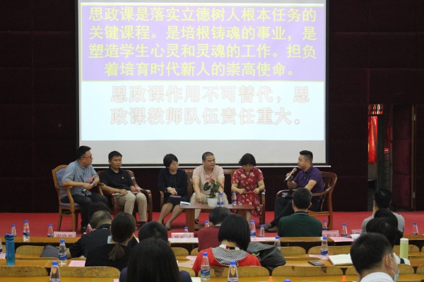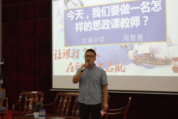 接著,大南中學(xué)德育處副主任周智勇主持了題為《今天,我們要做一名怎樣的思政課教師》的沙龍論壇。第一組嘉賓圍繞思政課承擔(dān)的使命感、課程育人過程中的困惑、如何具體實施課程育人,達到立德樹人的目的“論道”。他們指出所有的學(xué)科都擔(dān)負(fù)了育人職責(zé),但是道法學(xué)科是關(guān)鍵,道法課堂是主陣地;思政課教師隊伍責(zé)任重大,要有信念在心中,幫助學(xué)生扣好“人生的第一??圩印保瑯淞⑽幕孕?。