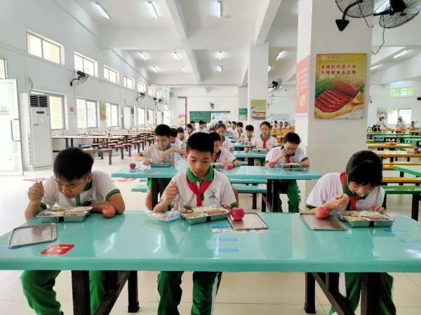 午餐時間在上午的各種活動結(jié)束后悄然到來,學(xué)生在老師的帶領(lǐng)下嚴(yán)格按照“七步洗手法”排隊洗手,錯時錯峰分區(qū)域洗手,有序就餐。