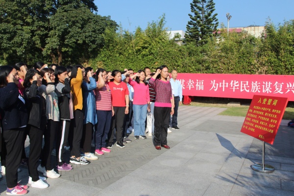 活動(dòng)的第一站,黨員們來(lái)到中山紅色教育基地——楊殷故居。參觀故居前,港口鎮(zhèn)中心小學(xué)黨支部書(shū)記章小蘭同志帶領(lǐng)全體黨員在故居前重溫入黨誓詞,堅(jiān)定入黨初心。隨后,懷著對(duì)革命先烈的崇敬之情參觀故居。黨員們通過(guò)一份份珍貴的歷史資料和照片,深刻感受到楊殷烈士不惜用自己的生命捍衛(wèi)真理,不畏犧牲為黨奉獻(xiàn),為實(shí)現(xiàn)共產(chǎn)主義事業(yè)奮斗的一生,再次堅(jiān)定各位黨員為人民謀幸福的初心,為民族謀復(fù)興的使命。