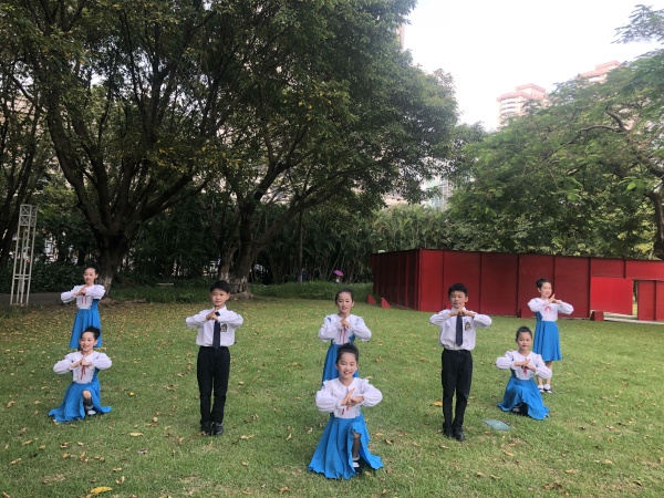 在燦爛的秋日里,天朗氣清,惠風(fēng)和暢,“左是言,右是上,五筆寫成讓......”中山岐江公園傳來了朗朗的童謠唱誦聲,原來是港口鎮(zhèn)中心小學(xué)的八位小朋友在拍攝童謠《讓字歌》呢。唱誦童謠的小朋友們身穿統(tǒng)一的服飾,臉上洋溢著開心的笑容,載歌載舞,整個(gè)拍攝過程整齊有序,非常順利。歌舞處處顯謙讓,帶給人無盡的喜悅。