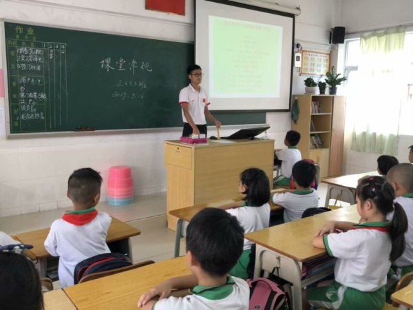 “鐘聲響,快做好,認(rèn)真做,視力好......”在廣播會(huì)議結(jié)束后,各個(gè)班級(jí)傳來(lái)大聲朗讀課堂常規(guī)三字經(jīng)的聲音。班主任們用多種形式將“課堂常規(guī)三字經(jīng)”內(nèi)容進(jìn)行強(qiáng)化。讓學(xué)生暢談感受,積極尋找和發(fā)現(xiàn)日常課堂行為中的不足,修正了學(xué)生不良的課堂行為習(xí)慣,使行為規(guī)范教育貼近學(xué)生生活,走進(jìn)學(xué)生的心靈。