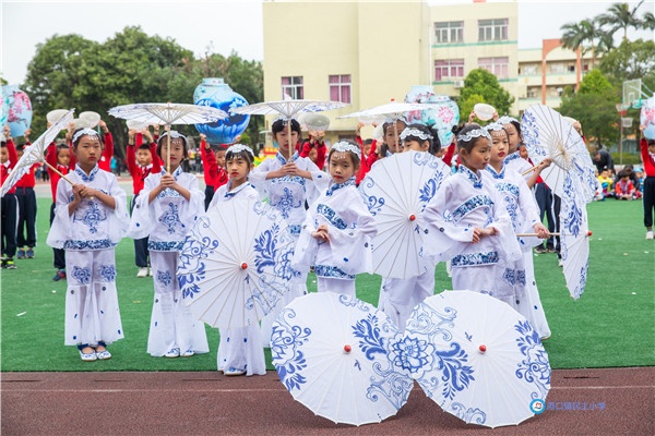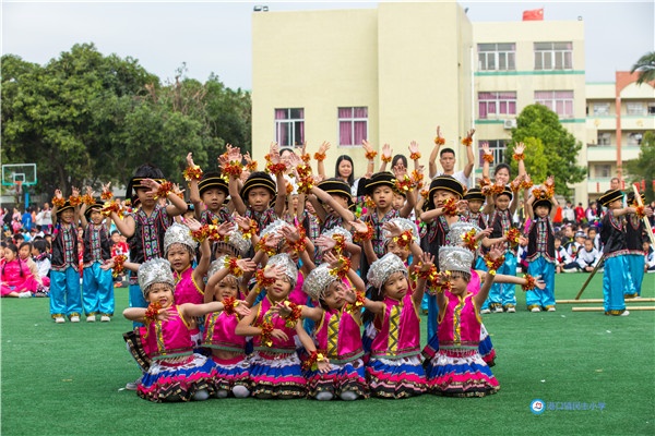 各方陣在國旗、校旗的引領(lǐng)下,昂首步入會場。嘹亮的口號彰顯出學(xué)生們的青春風(fēng)采和高昂斗志。他們個個精神飽滿,學(xué)生們整齊的動作、個性的著裝、獨具特色的隊形和造型展示、動感十足的舞蹈,一致贏得了老師、家長和同學(xué)們的陣陣掌聲。瞧,七彩云南方隊向我們走來,孩子們多彩的民族服飾,優(yōu)美的舞姿,是那么的動人心弦,帶領(lǐng)大家仿佛走進了這個多姿多彩的省份?!按笈d機場”方隊在班主任的帶隊下,整齊劃一的步伐,流利的中英文介紹,展現(xiàn)了作為新時代航天人的超高素質(zhì)以及努力為祖國發(fā)展貢獻力量的使命感和責(zé)任感?!爸槟吕尸敺濉狈疥爠t通過展示攀爬珠峰過程中的艱辛和對祖國滿腔的熱愛,展示了中華兒女不畏艱辛,勇攀珠峰的不屈精神。本次極具特色的方隊還有很多,如“美麗的葡萄溝”“沙漠綠洲”“和美中山”“多彩貴州”等等。