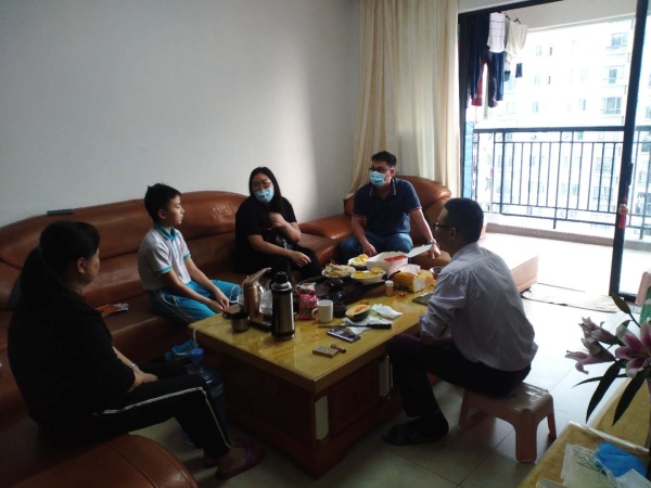 老師們帶著滿滿“愛心”,走街串巷來到孩子們的家中,關(guān)心孩子們?cè)诩业纳?、學(xué)習(xí)情況。久違不見的師生們,盡管隔著口罩,仍掩蓋不住彼此相聚時(shí)刻那滿心的喜悅與感動(dòng)。對(duì)于在線上學(xué)習(xí)過程中孩子們遇到的困惑,老師們進(jìn)行現(xiàn)場(chǎng)學(xué)習(xí)指導(dǎo),及時(shí)為他們解答疑惑,并結(jié)合孩子在家的生活現(xiàn)狀適時(shí)普及疫情防控相關(guān)知識(shí)。老師們與家長(zhǎng)進(jìn)行了愉快的溝通與交流,引導(dǎo)家長(zhǎng)要多關(guān)注孩子的身心健康,督促孩子在家保持良好的作息習(xí)慣,積極鍛煉身體,做到勞逸結(jié)合,防止沉迷游戲。家校溝通的過程中,老師們更加深入而全面地了解了學(xué)生這段期間居家情況,為返校復(fù)課做好充分的準(zhǔn)備。