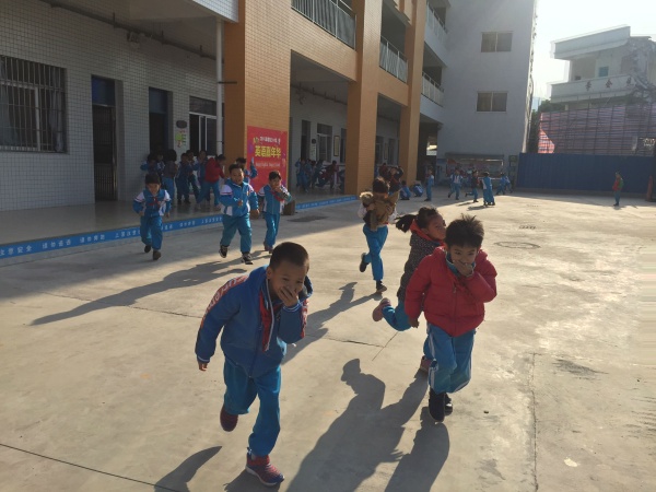 首先模擬的是地震發(fā)生時的情景。當(dāng)天上午大課間,第一聲急促刺耳的警報聲響起……學(xué)生在老師的指導(dǎo)下雙手抱頭或用書本保護頭部,將身體蜷縮,迅速躲在桌子下、柜子或墻角等牢固的三角空間。隨后模擬火災(zāi)發(fā)生時的情形。隨著第二次警報聲的響起,各位老師立即到達指定崗位,各樓層負責(zé)老師迅速站在教學(xué)樓各個轉(zhuǎn)角處,引導(dǎo)樓內(nèi)學(xué)生快速疏散,維護樓道安全。各班任課老師帶領(lǐng)學(xué)生彎著腰,用手帕、毛巾、手等捂住口鼻,按照指定的疏散路線,快速,有序,安全地疏散到教學(xué)樓前操場的安全地帶。整個疏散過程中,各樓層各班級都做到了井然有序,無人員遺漏,無傷情出現(xiàn)。