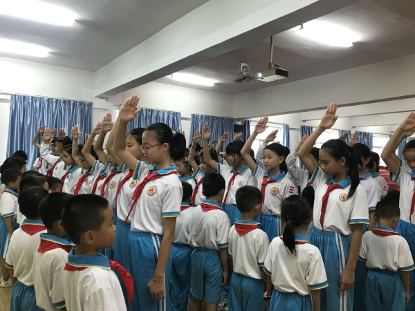 金秋十月,清風送爽。港口鎮(zhèn)群眾小學隆重舉行2019年入隊儀式。共同見證入隊儀式的有學校少工委主任廖潔瑩、德育處主任的郭南洪、大隊輔導員和部分老隊員。