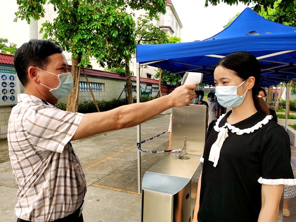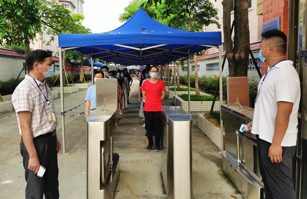 9時(shí)整,演練正式開始。這次演練分別模擬了學(xué)生入校、課室午檢時(shí)發(fā)現(xiàn)發(fā)熱等突發(fā)狀況場(chǎng)景下的應(yīng)急處置。演練中,參演人員按照學(xué)校應(yīng)急處置演練方案布置,按照各自的分工和職責(zé)規(guī)范站位,整個(gè)演練活動(dòng)緊張、認(rèn)真、有序地進(jìn)行。演練結(jié)束后,全體人員再次集中,梁容根校長(zhǎng)對(duì)實(shí)戰(zhàn)演練進(jìn)行總結(jié),強(qiáng)調(diào)了防控工作的重要性,強(qiáng)調(diào)復(fù)學(xué)工作必須堅(jiān)持以“外防輸入,內(nèi)防反彈”為原則,動(dòng)員大家高度重視。