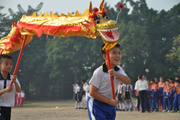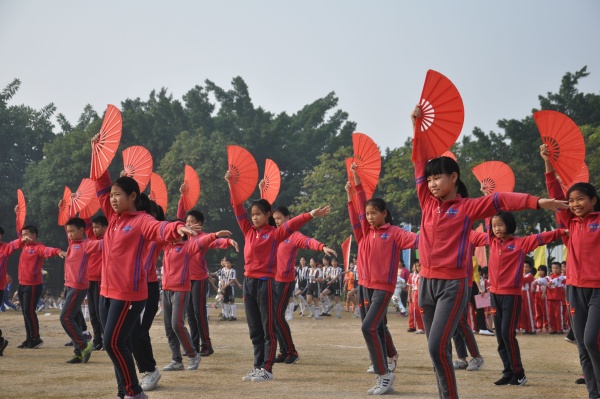 運動會開幕式在慷慨激昂的《運動會進行曲》中拉開序幕。第一環(huán)節(jié)是各班班級展示粵文化的入場式表演。同學們穿著各式各樣的服裝,臉上洋溢著明媚的笑意。所有班級的表演各有千秋。表演中,有在激情昂揚的粵語歌曲下?lián)]舞著雙臂;有帶著動物面具,在可愛的《何家公雞何家猜》音樂中舞蹈;甚至還有以近期流行粵語音樂《野狼Disco》為背景來跳舞。不止這些,我們還看到了精彩的太極扇舞,亦或是抱著茶點蒸籠的可愛孩子……每一個班級的孩子們都發(fā)揮出最好的自我,將優(yōu)秀的粵文化完美地展示給大家。前期的辛勤苦練,在這一天——這個重要的日子里,終于得到了回報。在這一天,同學們臉上喜悅的笑容,主席臺上的陣陣掌聲與歡呼聲更加的熠熠生輝。