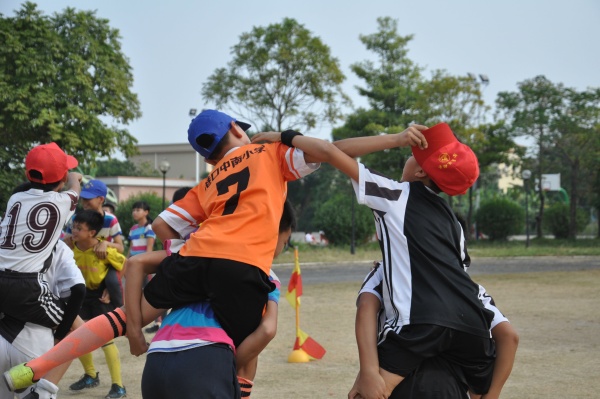 各班入場式表演圓滿結(jié)束,接下來便開始既激動人心又有趣好玩的運動比賽了!此次比賽,體藝科組的老師們設(shè)計了許多有趣的比賽項目,如蜘蛛人、搶奪腰旗、旋風跑、小船過橋……