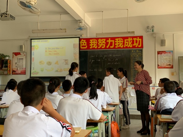 本次課題研討活動(dòng)首先由港口中學(xué)姚曉梅老師展示了課題教學(xué)研討課例,她執(zhí)教的是人教版七年級上冊“Unit6 Do you like bananas?”的第一課時(shí),姚老師展示的是一節(jié)聽說課,整節(jié)課姚老師都是圍繞單元話題開展教學(xué)活動(dòng),姚老師首先以單元話題Food引出本節(jié)課的詞匯和目標(biāo)語言,讓學(xué)生在真實(shí)的語境中接觸語言,然后通過聽說活動(dòng),讓學(xué)生在語境中理解和運(yùn)用語言。張?zhí)﹦偫蠋熀托伶I老師都對這節(jié)課例給予了充分的肯定,同時(shí)也針對姚老師的課堂教學(xué)設(shè)計(jì)給出了合理的建議。