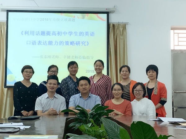港口中學(xué)2018年市級立項(xiàng)課題《利用話題提高初中學(xué)生的英語口語表達(dá)能力的策略研究》開展研究已經(jīng)有一年的時(shí)間了,通過課題組全體成員的努力,課題研究進(jìn)展順利,取得了一定的成果,但也遇到了一些困惑。為了突破瓶頸,更深入地探討課題研究的相關(guān)內(nèi)容,11月1日下午,課題組邀請了中山市教育教學(xué)研究室英語教研員張?zhí)﹦偫蠋熀托伶I老師到校指導(dǎo)課題的開展工作。港口中學(xué)教學(xué)處姚建花主任和賀康居副主任以及課題組全體成員參加了此次研討活動(dòng)。本次研討活動(dòng)包括課例展示、專家組查閱資料、課題組主持人做課題階段性匯報(bào)以及專家點(diǎn)評指導(dǎo)四個(gè)環(huán)節(jié)。