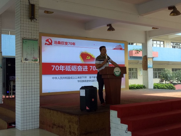 為喜迎中華人民共和國成立70周年,讓師生感受祖國走過的70年來的滄桑巨變,加強(qiáng)師生的愛國情懷,培養(yǎng)珍惜當(dāng)下、奮發(fā)圖強(qiáng)、與祖國共同成長的思想意識,學(xué)校黨支部書記管德豐同志于9月23日下午在學(xué)校大廳召開了“70年砥礪奮進(jìn) 70年春華秋實”的主題講座,給初一師生講述了祖國成長歷程中的可喜變化。