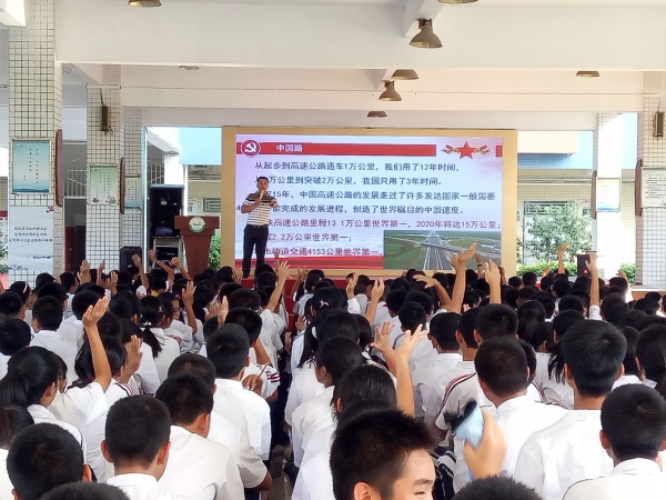 中華人民共和國成立以來的70年,是不斷創(chuàng)造偉大奇跡、徹底改變中華民族前途命運的70年。管書記從中國的“舊四大發(fā)明”——指南針、造紙術(shù)、火藥、印刷術(shù),講到如今的“新四大發(fā)明”——高鐵、網(wǎng)購、移動支付和共享單車,與師生互動,一起談?wù)撊缃裰袊鐣萍歼M(jìn)步帶來的巨大便利,引起了大家的興趣,活躍了現(xiàn)場氛圍。中國網(wǎng)、中國車、中國路、中國飛機(jī)、中國橋、中國衛(wèi)星,這一樣樣的“中國制造”,令現(xiàn)場師生為之震撼,也觸動了學(xué)生們要努力學(xué)習(xí),與祖國一同進(jìn)步,為祖國的未來增添光彩的決心。