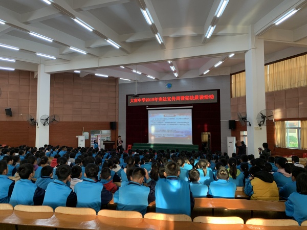 大南中學舉行2019年憲法宣傳周暨憲法晨讀活動發(fā)布時間:2019-12-06 10:37 信息來源:本網(wǎng)站 瀏覽次數(shù):0