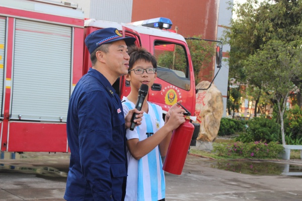 演練結(jié)束后,港口鎮(zhèn)消防大隊(duì)的劉啟堂指導(dǎo)員進(jìn)行了總結(jié),并現(xiàn)場(chǎng)指導(dǎo)了滅火器的使用,邀請(qǐng)老師和學(xué)生手持滅火器對(duì)起火的煤氣罐進(jìn)行及時(shí)撲滅。