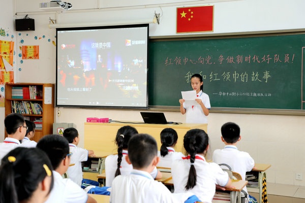為慶祝中華人民共和國成立70周年,慶祝中國少年先鋒隊建隊70周年,教育引導(dǎo)廣大少先隊員聽黨話、跟黨走,用實際行動把紅色基因代代相傳,增強(qiáng)少先隊員光榮感,華師中山附小結(jié)合本校少先隊實際情況,開展了“紅領(lǐng)巾心向黨,爭做新時代好隊員”主題隊日活動。