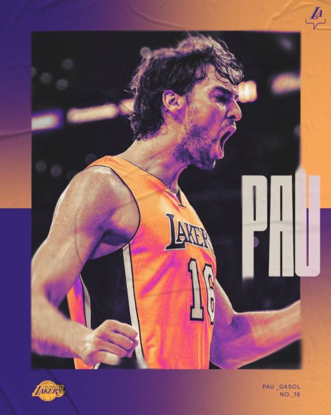 2008年2月1日,加索爾被灰熊交易至湖人,他在湖人效力7個賽季,幫助湖人兩次奪得NBA總冠軍,7年間他場均17.7分9.9個籃板3.5次助攻1.4次蓋帽。湖人官方社交媒體也在今天曬出了加索爾的照片,并且配文:“洛杉磯的英雄,享譽全球的籃球傳奇,向你的退役表示祝賀,保羅?!?br/>