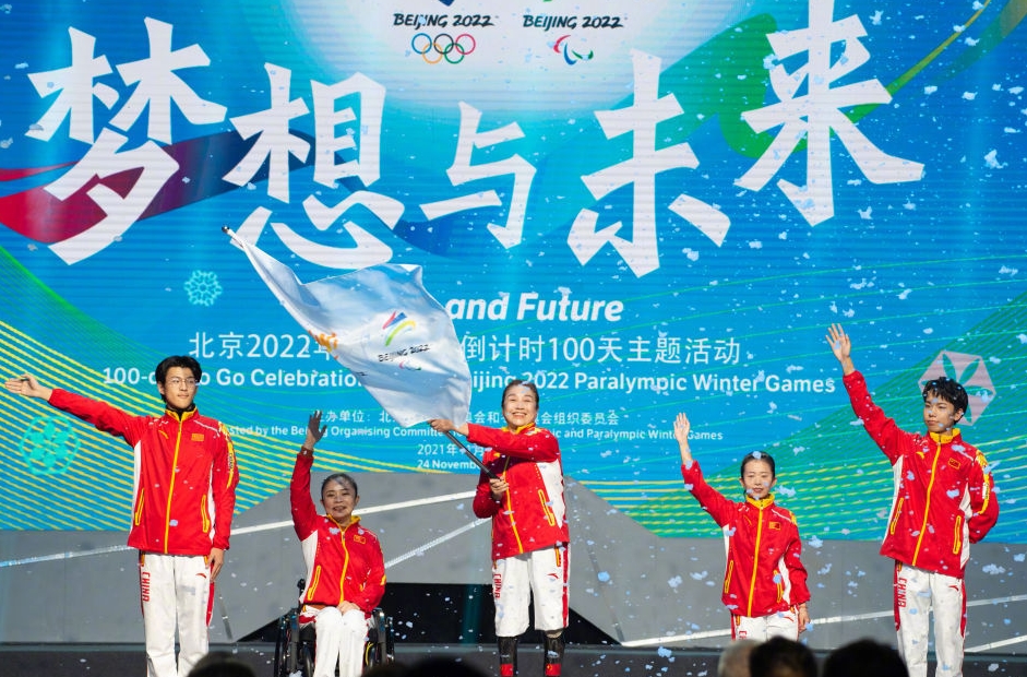 日前,北京市冬奧示范助殘社會(huì)組織的50多名代表受邀在國家體育館舉行了冬殘奧會(huì)倒計(jì)時(shí)100天快閃活動(dòng)。